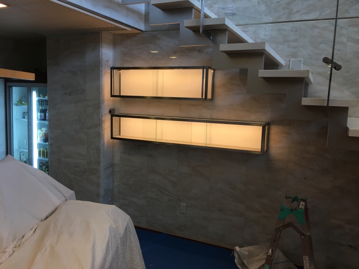 当社の製作工場では高い精度の求められる什器に対応出来るように木工製作工場に照明器具 ・アクリル・金物・ガラスなど、さまざまな仕上材を組付け&完成まで行える工場を併設して、全工程の細部に至るまでハイクオリティな仕事を追求し製作しております。